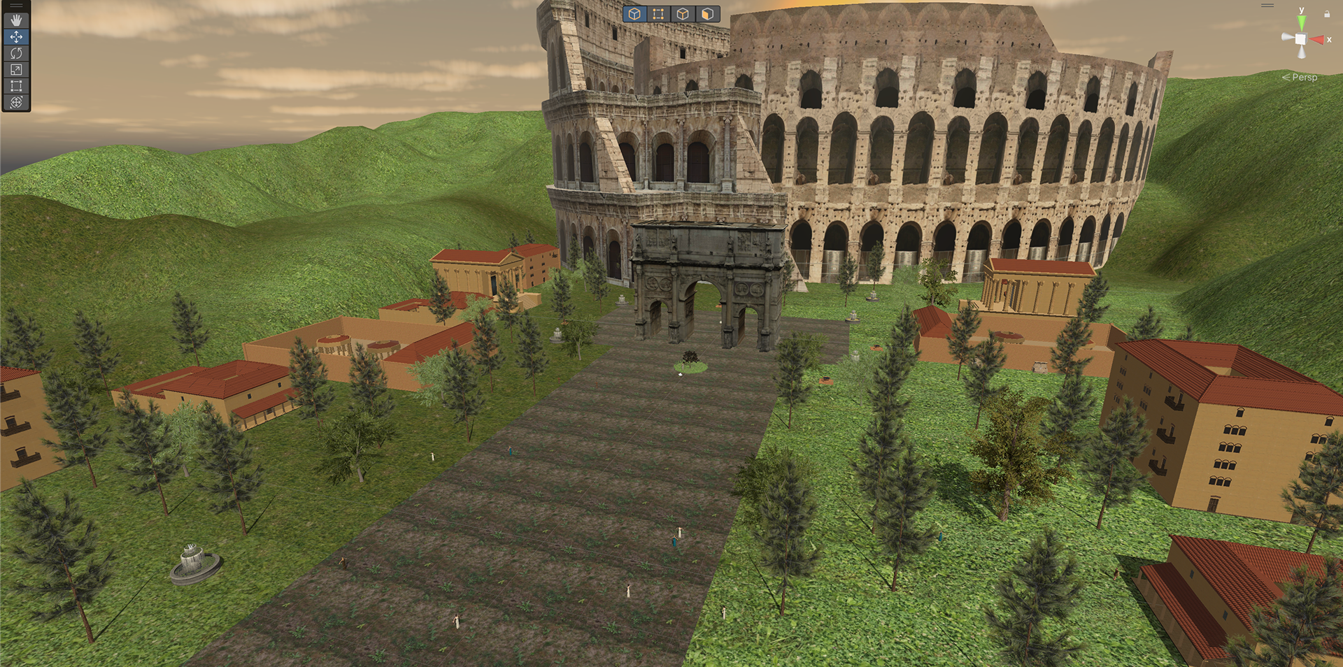I had to find the Colisseum prefab online, since it was not included in any of the assets. I also did secondary research to get an idea of where to place it in relationship to the arch of Constantine to make this digital twin as closely to the real world location as possible. It also helped me that I was in Rome in early January and walked through all of these places, and I remembered somewhat.